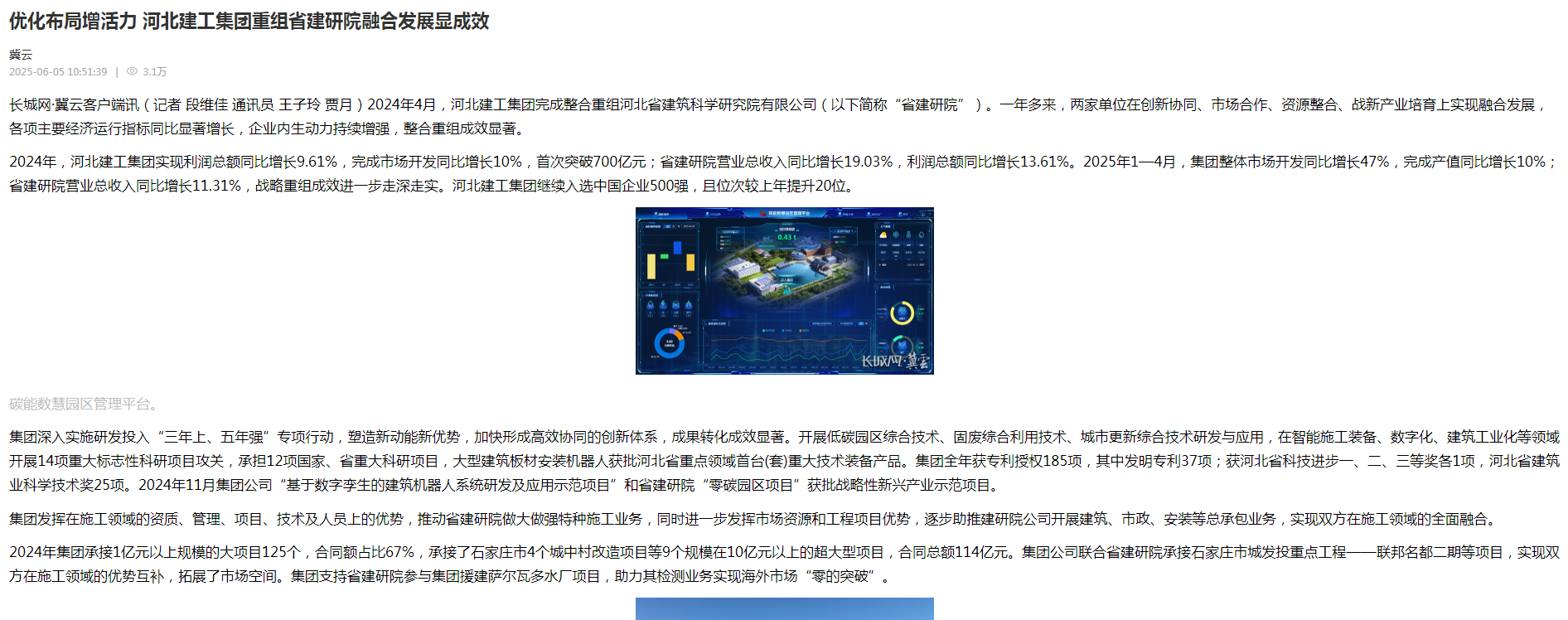 優(yōu)化布局增活力? ? ?轉(zhuǎn)型升級開新篇? 河北建工集團(tuán)重組省建研院融合發(fā)展顯成效 ? ? 在國有企業(yè)改革深化提升行動的關(guān)鍵時(shí)期,河北建工集團(tuán)有限責(zé)任公司堅(jiān)決貫徹落實(shí)省委、省政府和省國資委深化國企改革的決策部署,2024年4月完成整合重組...