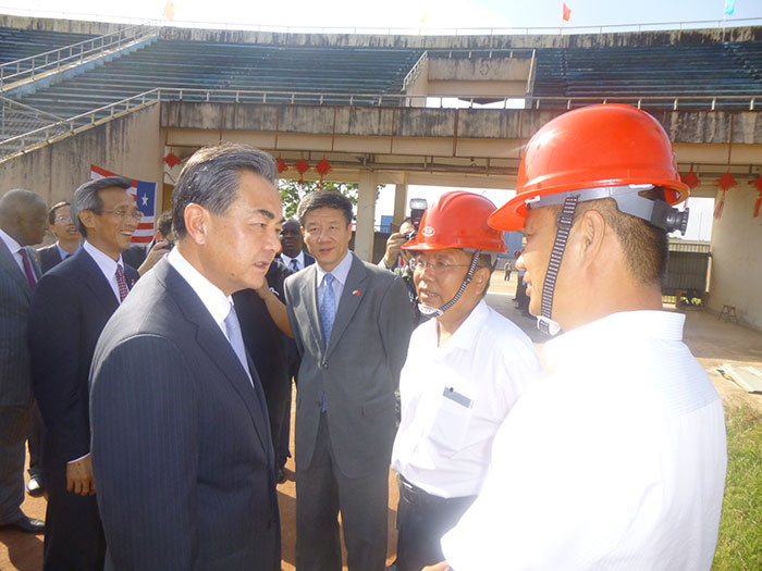 王毅視察援利比里亞SKD體育場項(xiàng)目